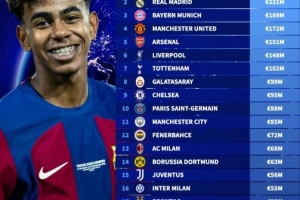 俱乐部2025年球衣销售收入榜:巴萨、皇马均超两亿欧,足坛唯二