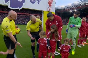 体育资讯12月27日讯 利物浦vs狼队赛前,若塔的两个孩子作为球童入场。