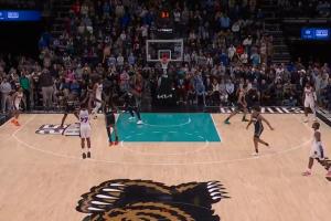 76人 灰熊加时最后时刻双方打成136平,马克西弧顶持球遭遇包夹,埃奇库姆跑出空位,接球三分自信投出轰进!完成绝杀!