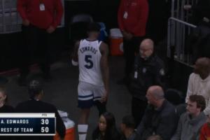 森林狼80-109落后,华子走回更衣室