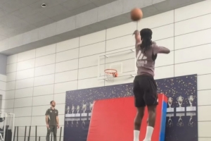 卡马文加秀篮球技术,连续4次远投命中,弹无虚发,他在社交媒体上晒出视频,配文:“我来了啊哈哈!”
