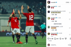 此役萨拉赫为埃及踢满120分钟,并攻入锁定胜局的第三球,帮助球队取胜,萨拉赫社媒晒出庆祝进球的照片,并配上红心表情符号。