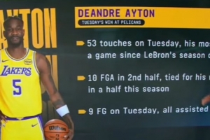 据统计,在这场比赛中,艾顿全场触球53次,创下自詹姆斯赛季首秀以来的单场最高纪录。