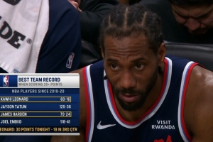 (伦纳德三节不到已砍下30分,其中第三节19分)