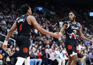 本场比赛,猛龙的进攻打得行云流水,全队共送出多达42次助攻,这一数据能够排到队史第三位(前两位分别是44次和43次),同时也刷新了球队的赛季助攻数纪录,其中巴恩斯和奎克利两人本场的助攻都上双。
