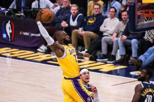 詹姆斯起飞单臂抡扣得手!关键一击!