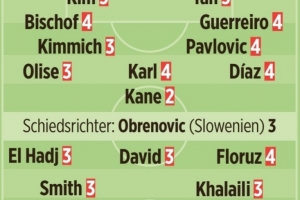 奥利塞3分、基米希3分、卡尔4分、帕夫洛维奇4分、迪亚斯4分