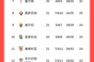 西甲积分榜如下
