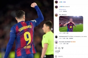 巴萨也成功直通16强。莱万也在赛后通过社媒晒出自己的振臂庆祝照,并配文:“我们做到了!”