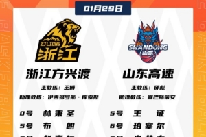 体育资讯1月29日讯 今晚19:35,CBA常规赛焦点战,广厦对阵山东。赛前双方公布了本场比赛的大名单。