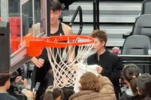 老乡来了!山东籍演员任嘉伦赛前观看杨瀚森训练 与小杨握手聊天