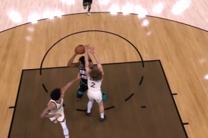 GIF-GG·杰克逊反击撞倒波杰姆斯基,裁判吹防守犯规,勇士挑战成功变成进攻犯规