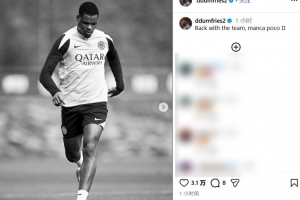 体育资讯2月13日讯 邓弗里斯更新社媒,晒出自己伤愈复出后的训练照+配文:回归球队,出战在即。