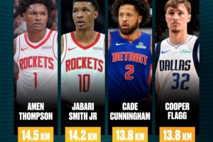 赛季第九周(12月16日-22日)联盟跑动距离最长的球员(均出战3场比赛):