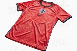 英格兰2026世界杯客场球衣谍照:红色为底,搭配白色和海军蓝