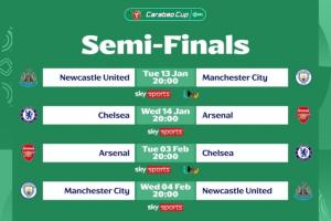 体育资讯12月24日讯 联赛杯1/4决赛,阿森纳1-1点球战8-7水晶宫晋级,将在半决赛对阵切尔西。联赛杯半决赛,切尔西、纽卡先主后客。