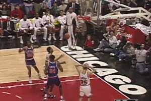 在1994年12月25日的芝加哥,比赛还剩3.3秒时,公牛队以100-97领先。安东尼·梅森从后场发出长传,球直接飞向站在篮筐右侧的史蒂夫·科尔。科尔跳起接住了球,但他担心自己会摔倒并被判走步违例,所以他试着把球传给队友。